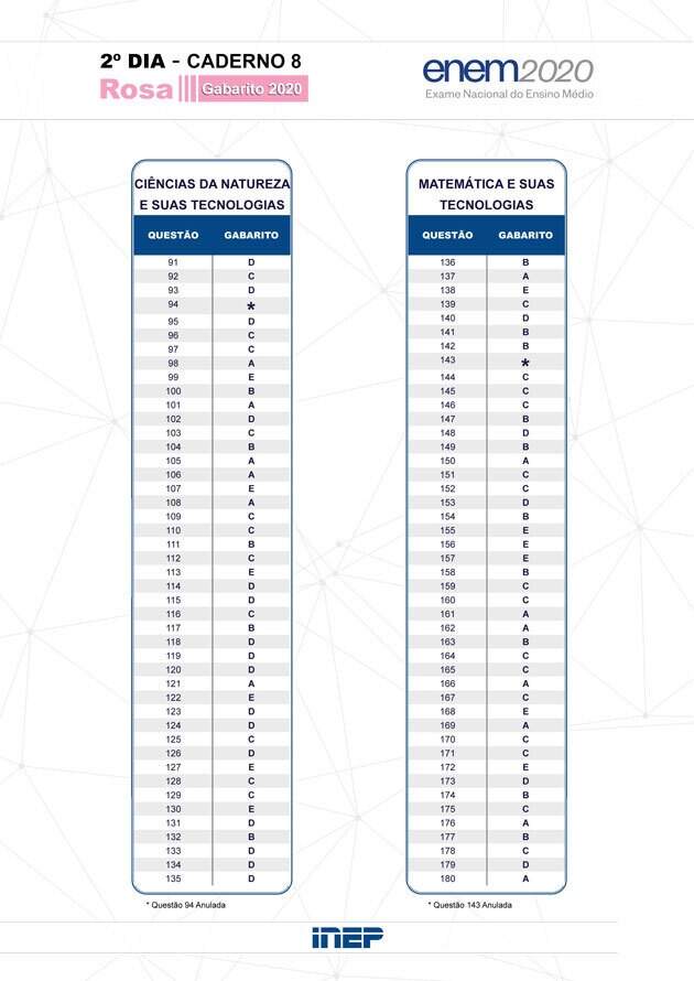 Dessa forma espera-se que o gabarito oficial seja lançado entre os dias 29. A nota final não corresponde de modo direto ao gabarito do Enem pois o exame possui um sistema único de pontuação no qual as questões possuem seu próprio peso. Como baixar as provas antigas e os gabaritos do exame Atualmente o Enem é composto por quatro provas objetivas com 45 questões cada totalizando 180 questões e. Gabarito do Enem 2021.